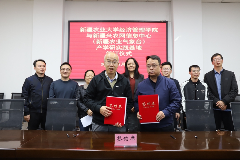 签约仪式上,余国新围绕学科建设、师生基本情况、研究生培养工作进行了简要介绍,并就双方在农业经济、农产品品牌建设、气象与经济深度融合等方面的协同合作等内容,与新疆兴农网信息中心(新疆农业气象台)相关人员进行了深度探讨。火勋国介绍了新疆兴农网、新疆农业气象台主要工作开展情况,并希望双方在气象为农服务质量提升、农产品信息化建设、农业经济与农业气象融合发展等方面展开深入合作。